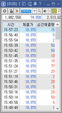 순간적으로 체결되는 흐름을 확인하는 창입니다.