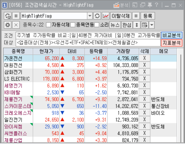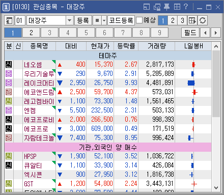 장이 시작되고 당일 공략할 종목을 선정할때 많이 사용하는 중요한 창 입니다.