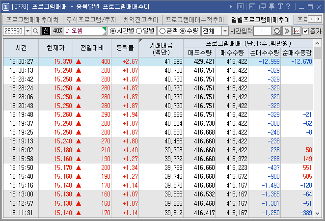 프로그램의 순매수수량을 확인하면 투자에 어느정도 도움이 됩니다.