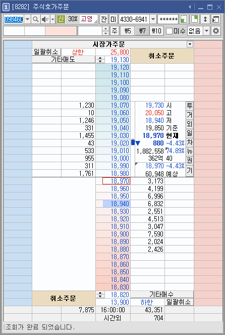 스캘핑과 돌파 매매시 필요한 호가주문창 입니다.